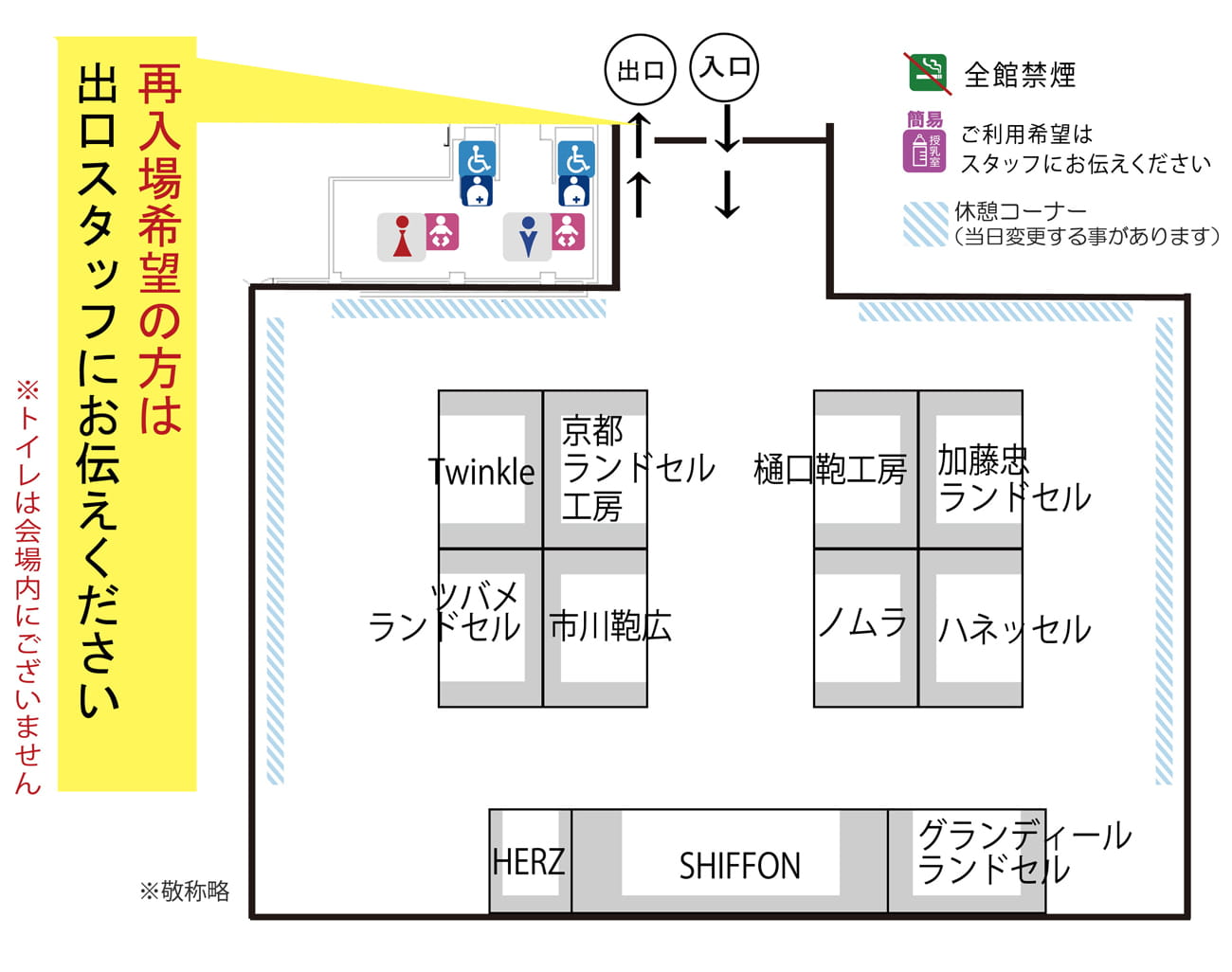 ・再入場希望の方は、出口スタッフにお知らせください。